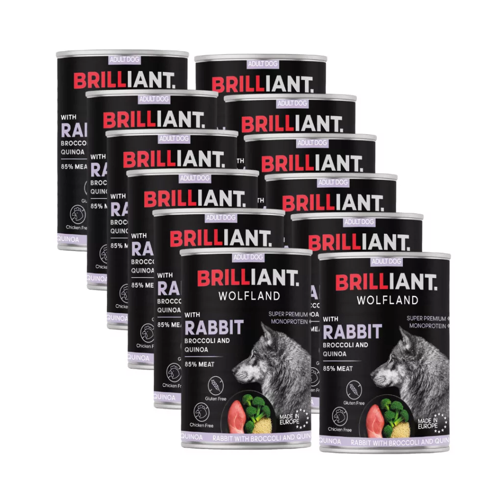 12 X 400 g Brilliant Wolfland Nyúl, Brokkoli és Quinoa kutyakonzerv